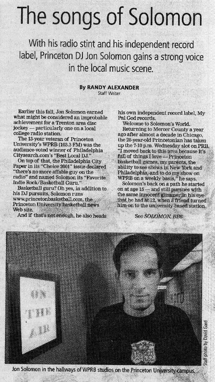 Jon Solomon can be heard every Wednesday evening across the Delaware Valley from 5:00 pm - 8:00 pm ET on 103.3 fm WPRB.