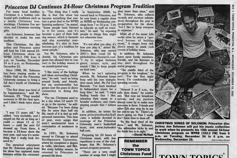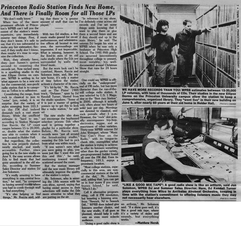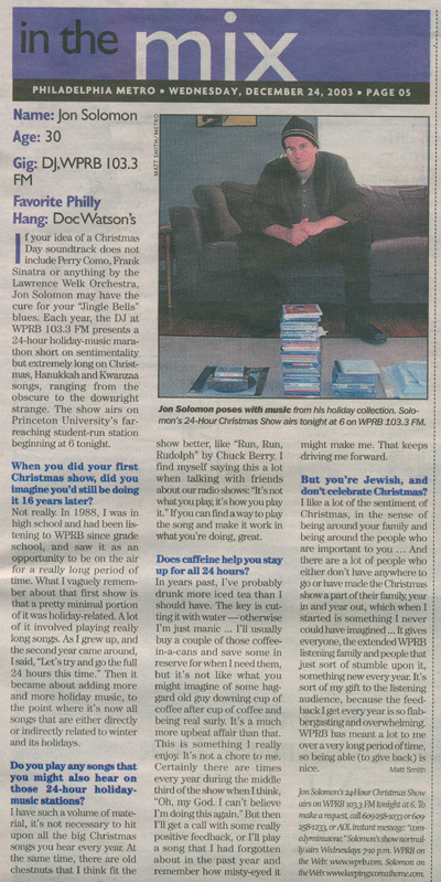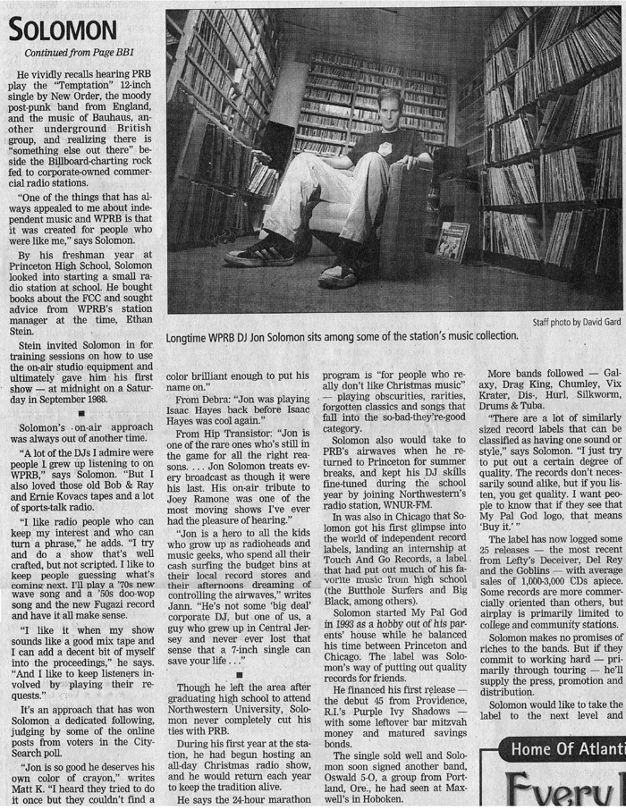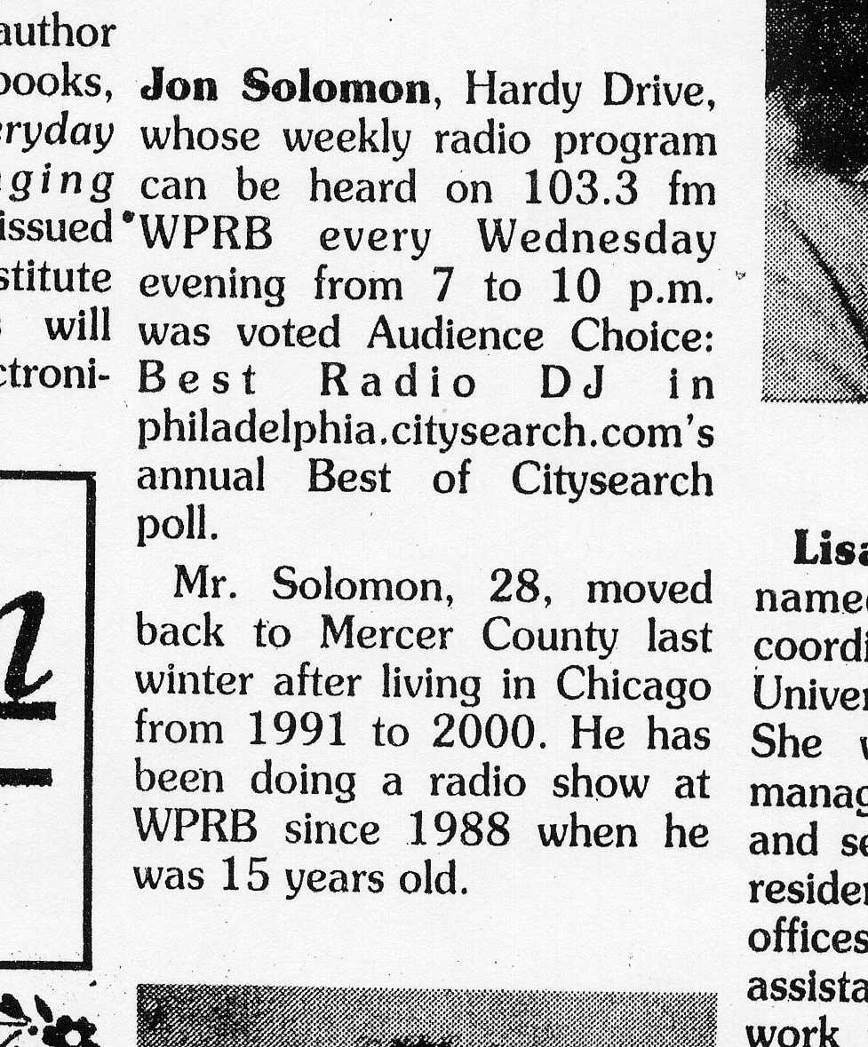 Jon Solomon can be heard every Wednesday evening across the Delaware Valley from 5:00 pm - 8:00 pm ET on 103.3 fm WPRB.